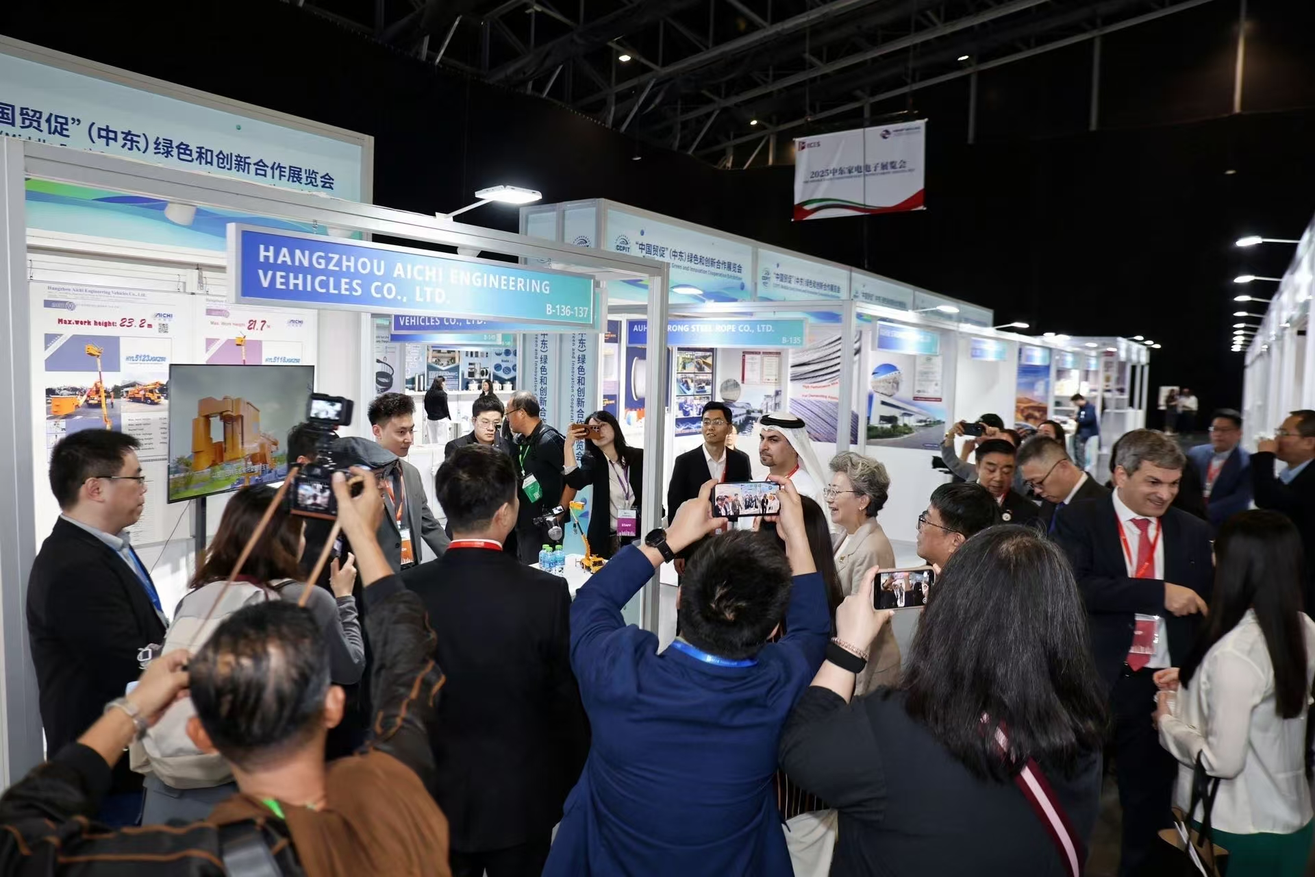 展会配套举办中阿经贸合作论坛,聚焦中阿经贸合作政策与产业发展,通过搭建企业对接平台,推动双方在技术升级、项目投资等领域开展务实合作,助力中阿实现优势互补、互利共赢。爱优倍科技(苏州)有限公司、阿里巴巴1688、杭州爱知工程车辆有限公司等企业集中展示具有市场竞争力的优质产品及创新成果,吸引采购商驻足参观、洽谈对接,现场交流气氛热烈。